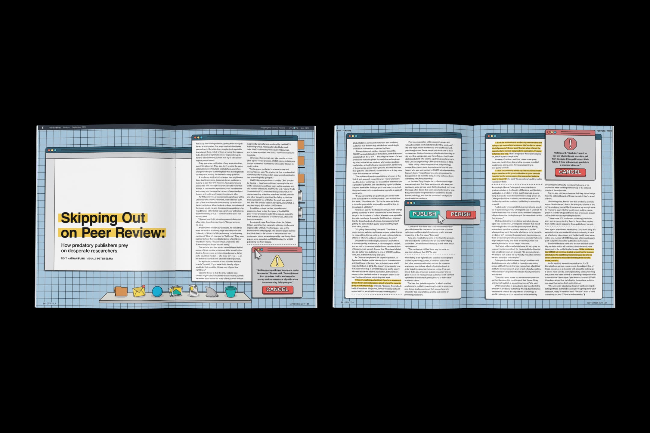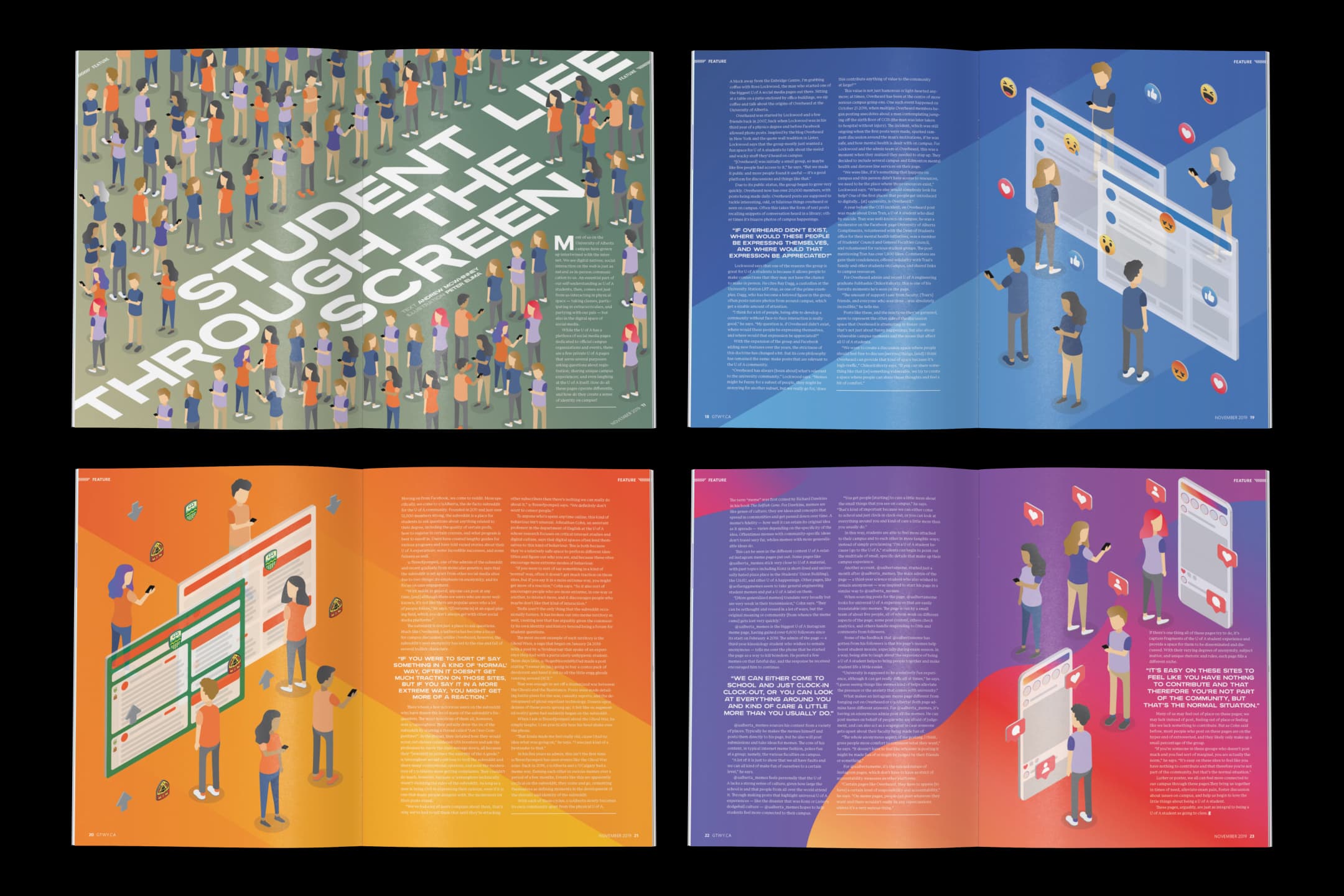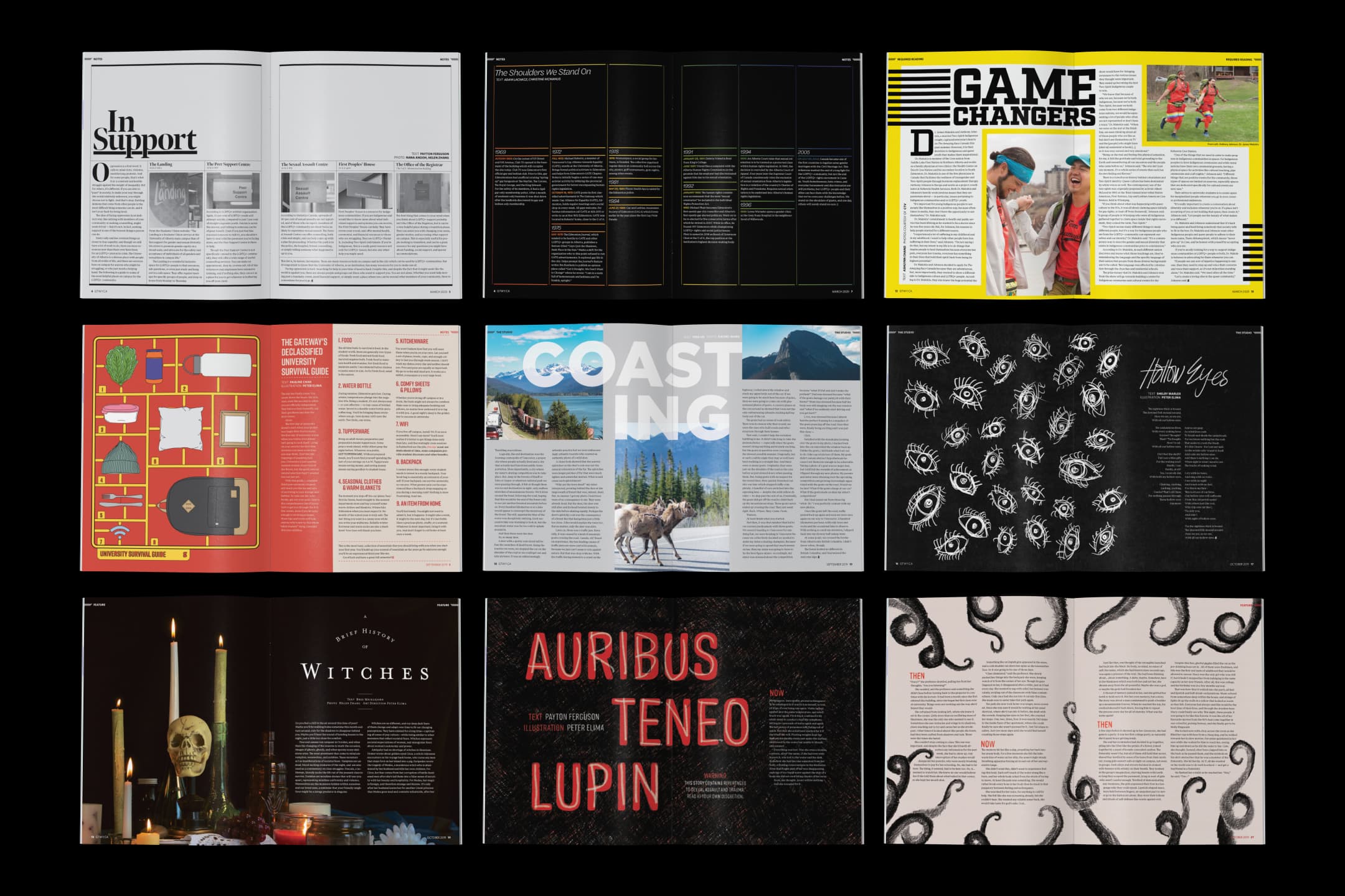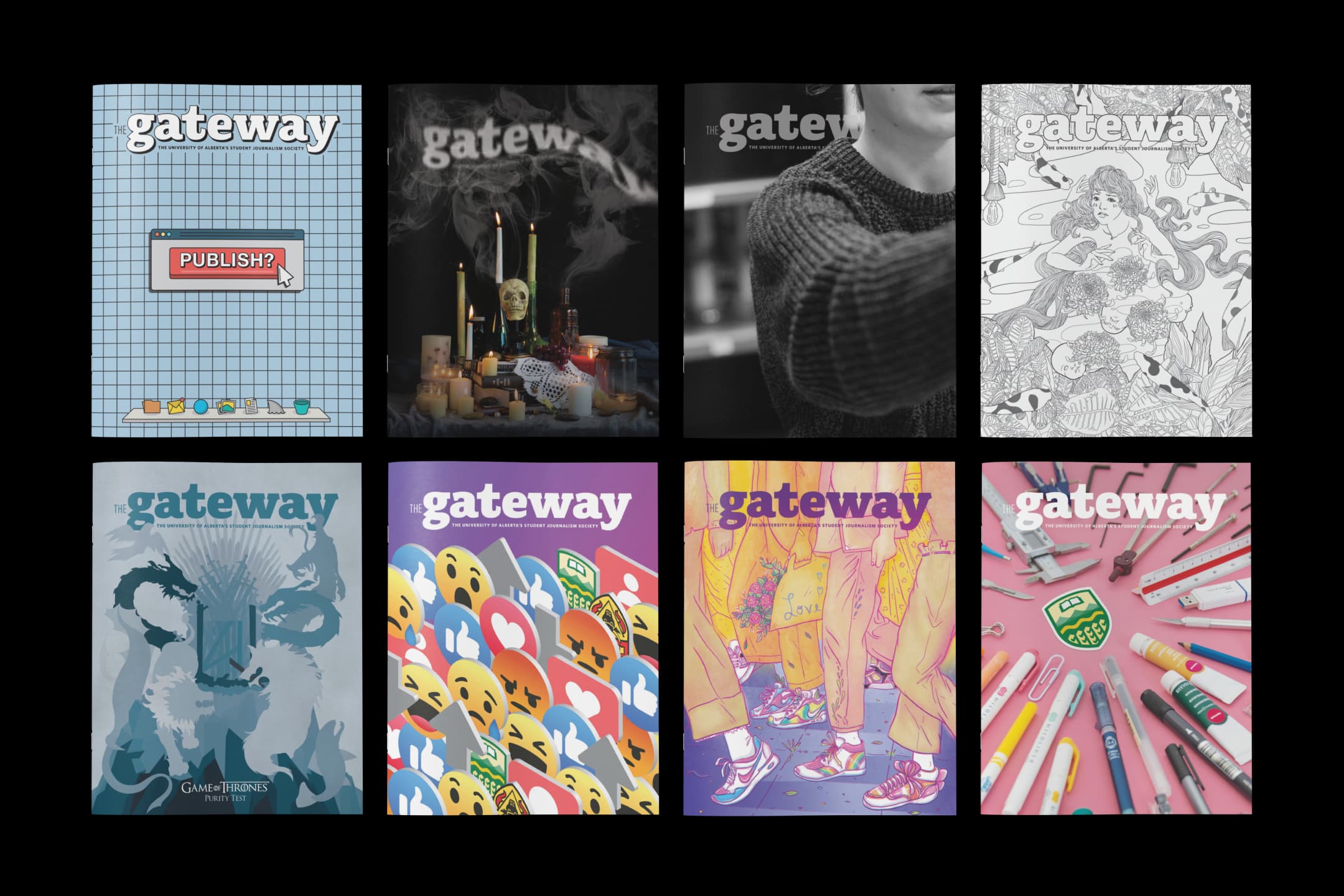 As the Art Director for the 2019-20 academic year, I had the privilege of overseeing the design and production of The Gateway, the University of Alberta's official student publication. As part of my role, I was responsible for commissioning visuals and providing art direction for all the illustrations and images featured in our monthly student magazine.