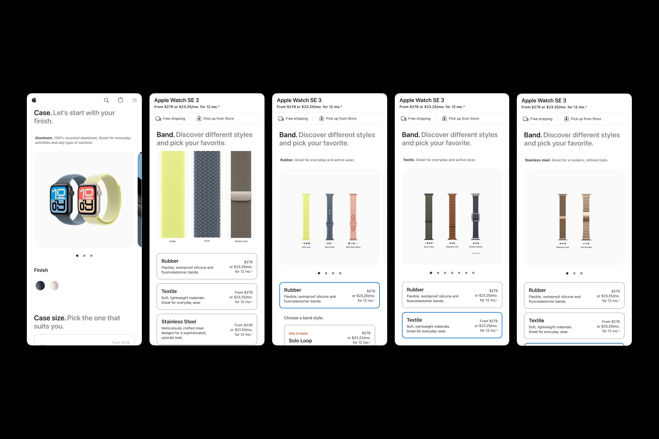 The work launched globally across apple.com and the Apple Store App. Assets shipped across homepage placements, buyflows, and product landing pages, viewed by millions of users worldwide. Through consistent application of Apple’s visual language and close collaboration across teams, the final work delivered a cohesive, premium brand experience that reinforced Apple Watch’s positioning across both core and luxury product lines.