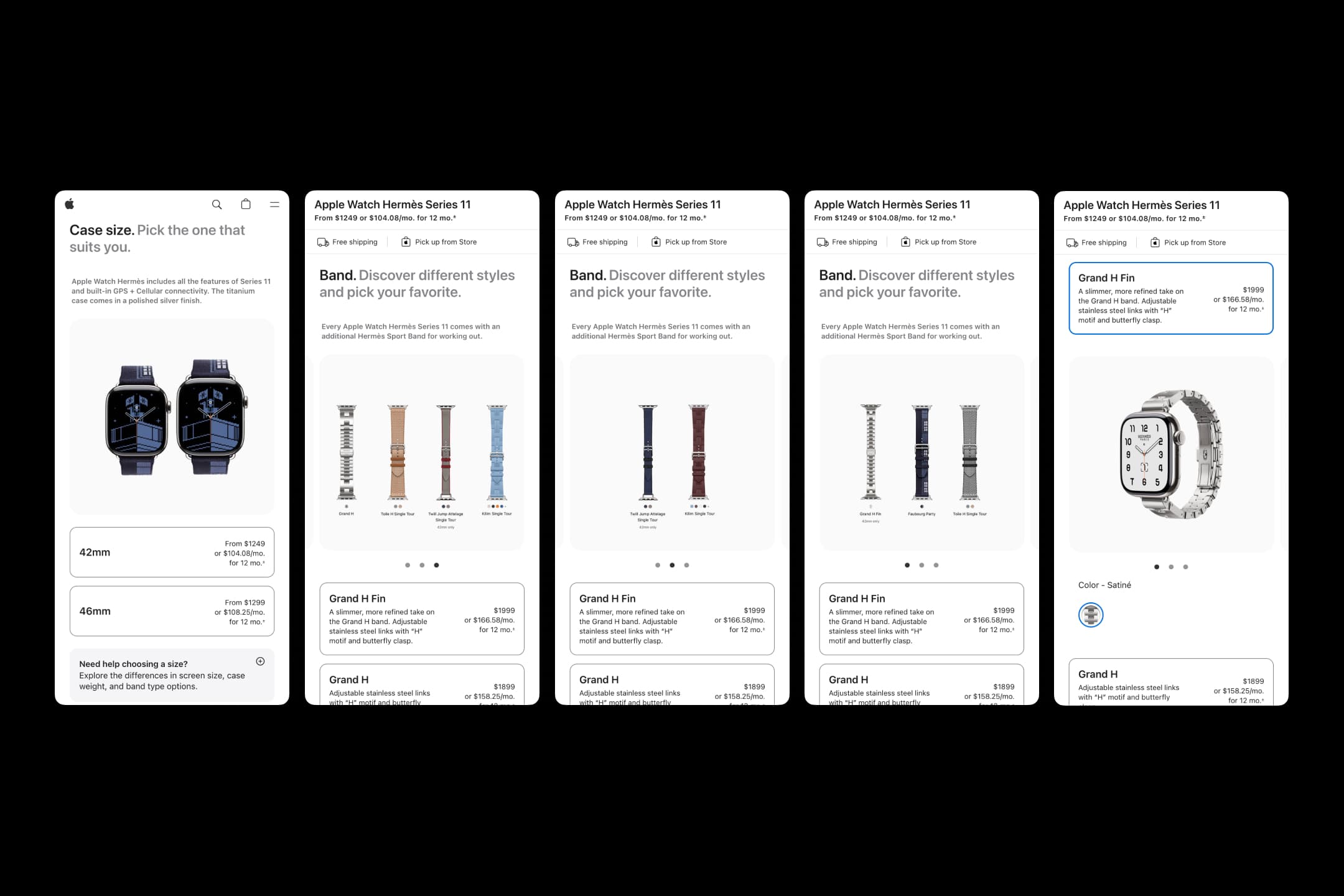 I partnered with Apple’s Marcom team to support the global launch of Apple Watch Series 11, SE3, and Apple Watch Series 11 Hermès, contributing visual design across high-visibility digital touchpoints on apple.com and the Apple Store App. My work focused primarily on static visual assets for the buyflows and homepage, and modular layouts for product landing pages.