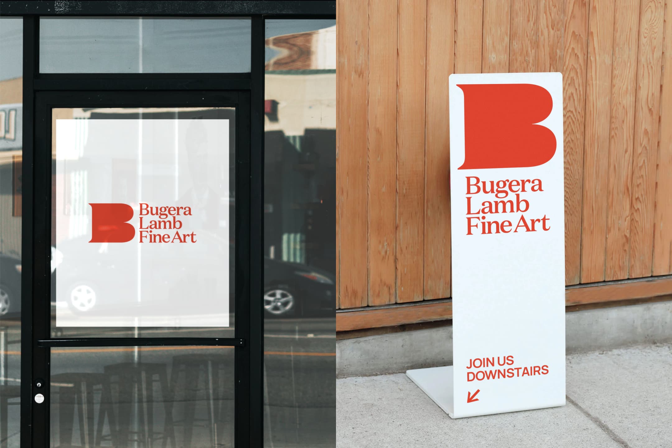 The rebranding focused on creating a mark that was both distinct and functional. The new identity introduces a bold yet refined "B" that acts as a recognizable symbol and a visual frame—echoing the act of viewing, selecting art, looking up close, and finding a hidden gem. The colour palette was adjusted to a deeper, more balanced red, setting the gallery apart from competitors while remaining inviting and elegant. Typography was chosen for its accessibility and sophistication, ensuring team ease of use.