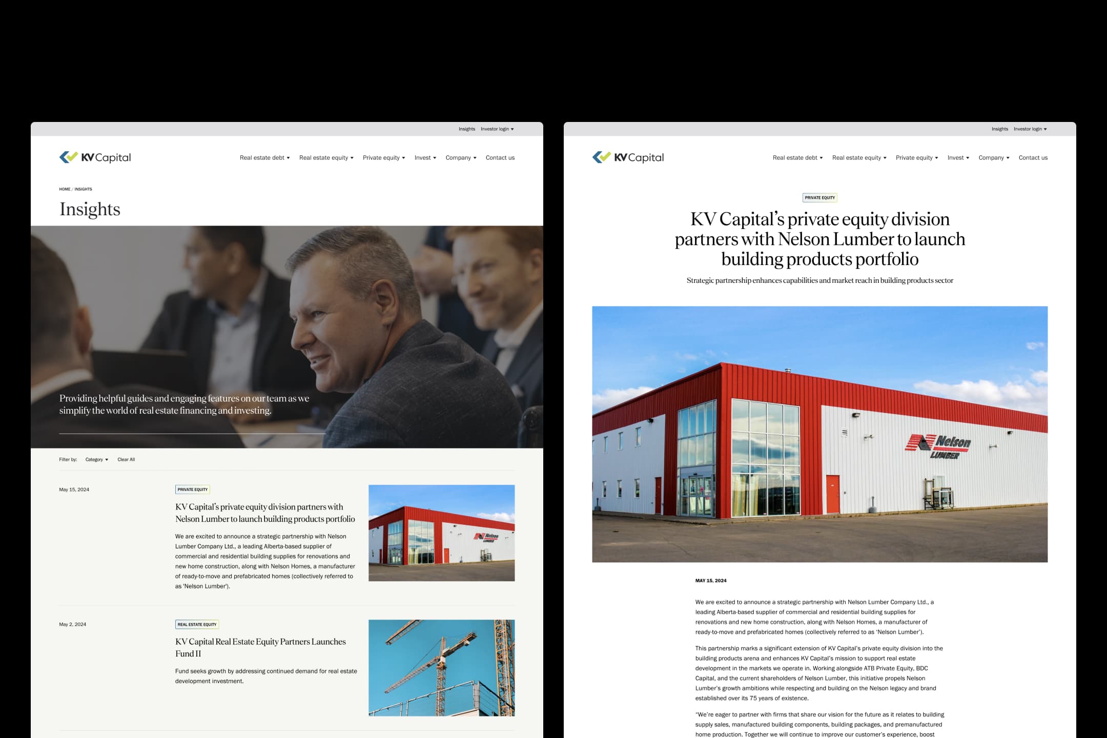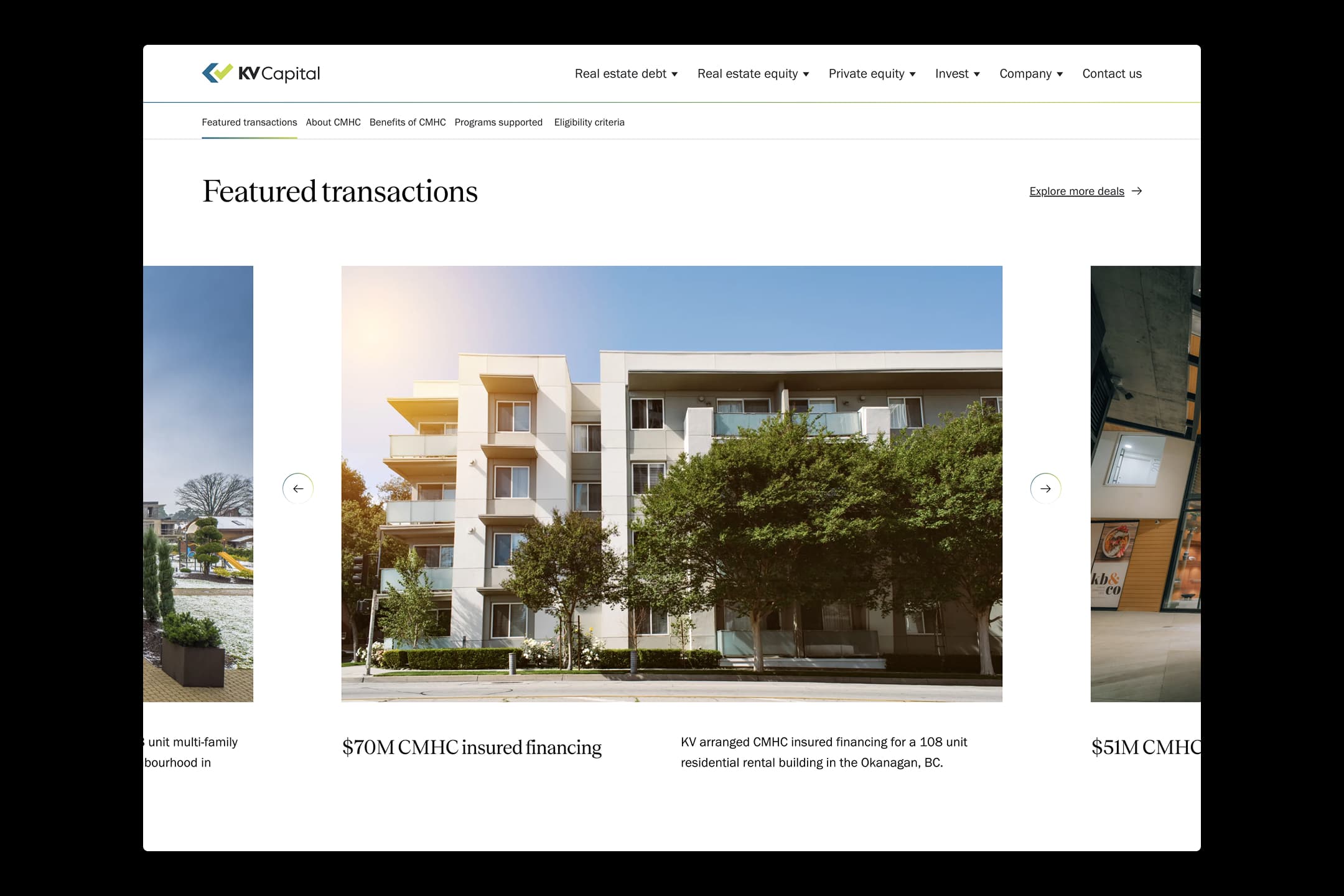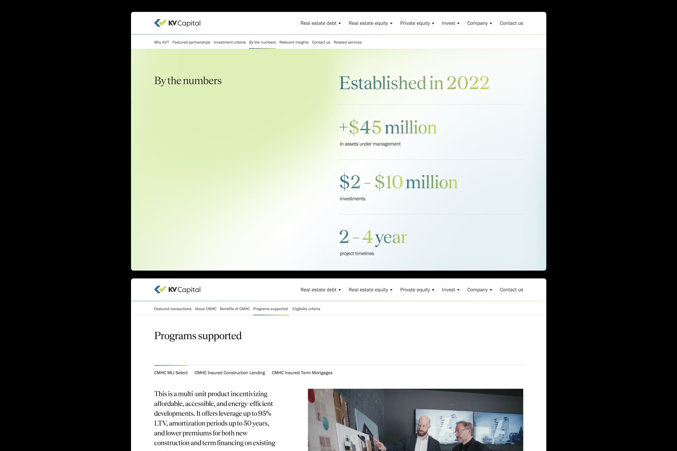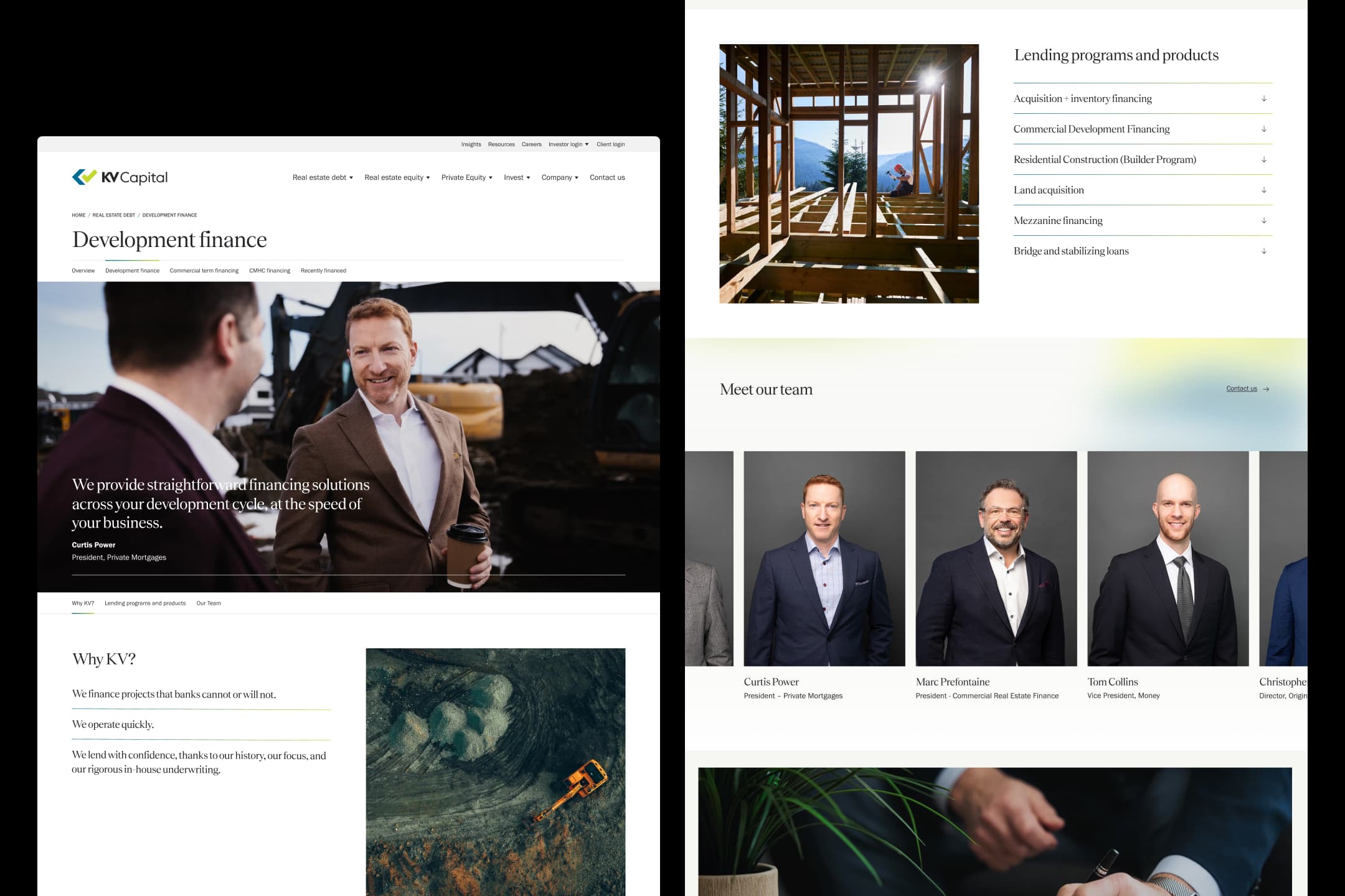 KV Capital is a team of diverse finance experts with a single purpose—to grow prosperity for their clients, partners and communities by creating great things in real estate. The new site provides a more user-friendly experience, making accessing information about KV Capital easier and highlighting their services and teams.