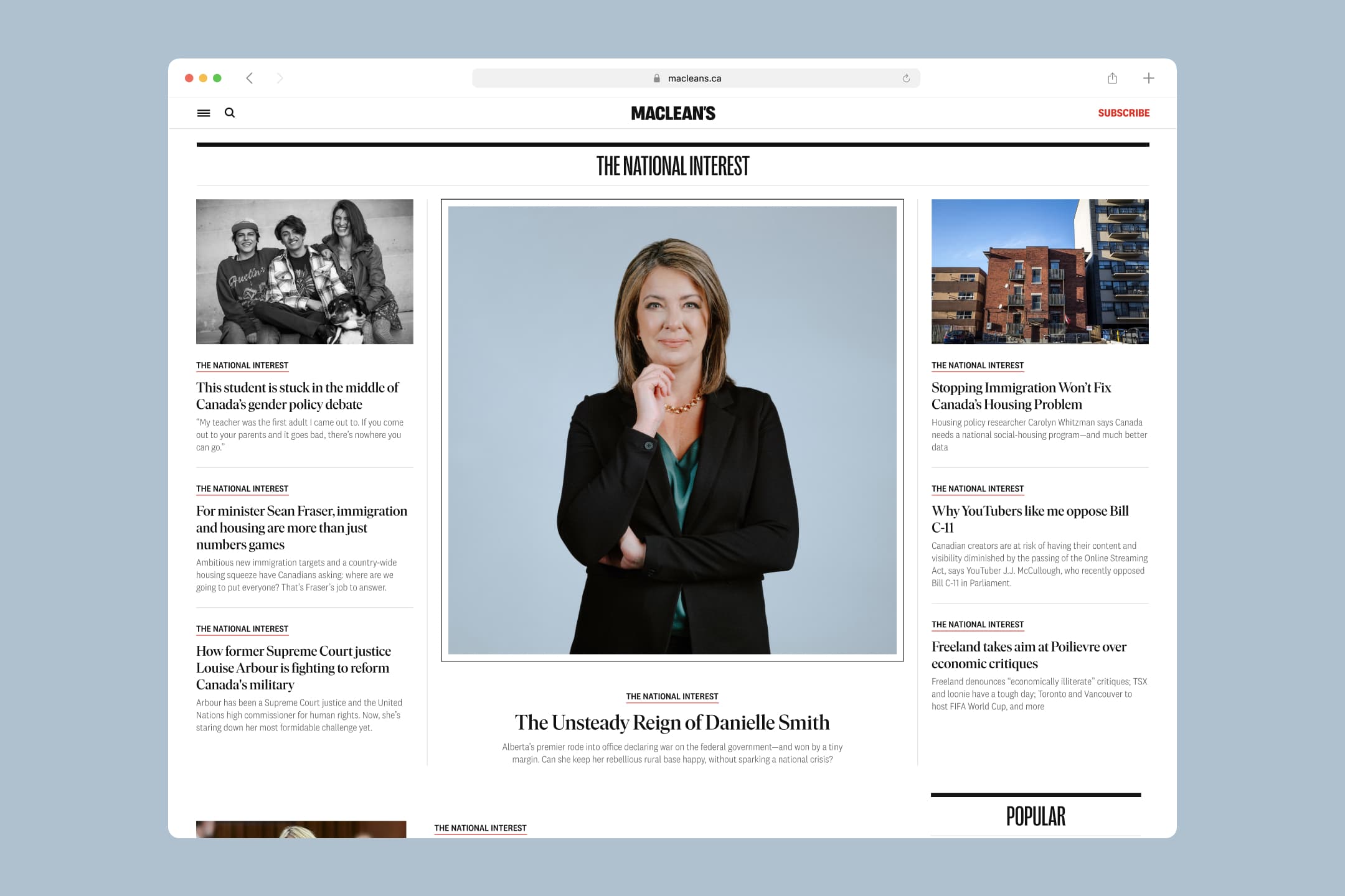 The redesigned site offers a visually engaging, media-rich storytelling experience that is mobile-optimized and aligned with Maclean’s brand identity.